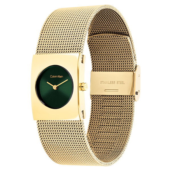スクエアケースと円形の文字盤の絶妙なバランス 直線的なスクエアケースの中に、円形の文字盤を配置するという、ユニークなデザインが魅力。シンプルながらも、見る人の目を惹きつけます。