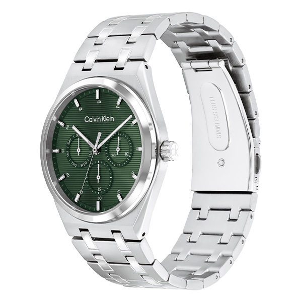 洗練された多角形のケースデザイン 多角形にカットされたベゼルと、一体感のあるブレスレットが特徴的。光の反射で表情を変える立体的なデザインが、手元をより一層引き立てます。