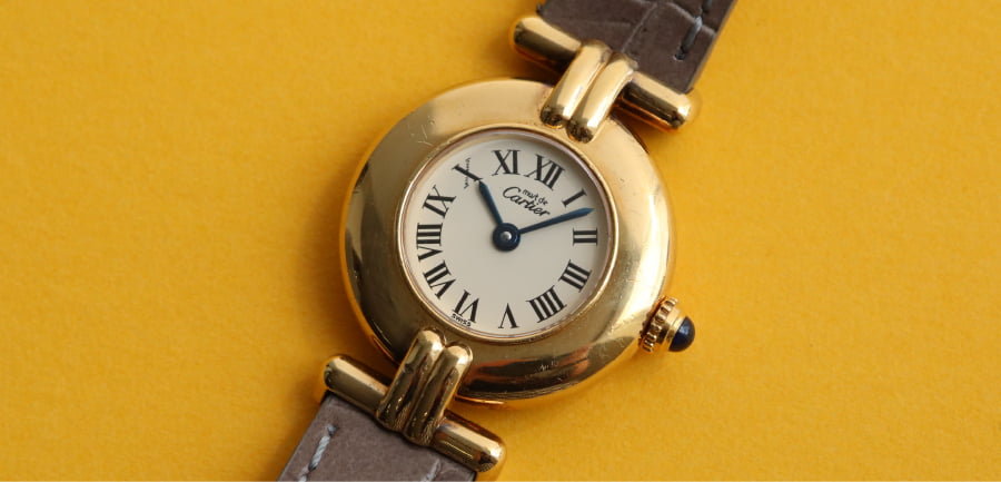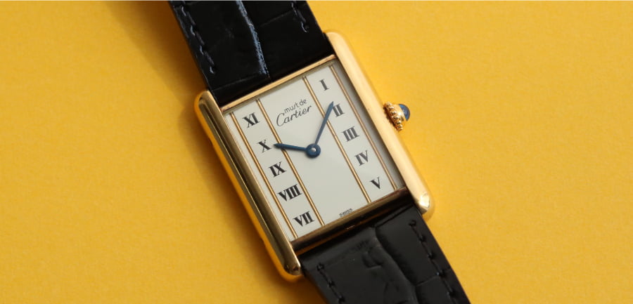 創業者のルイ・カルティエが第一次世界大戦中に戦車の轍(わだち)から着想を得たとされる、レクタンギュラーケースが特徴の「マスト・タンク」。「タンク」はいまだに現行シリーズとして残っている、高い人気を誇るカルティエの代表的な名シリーズです。